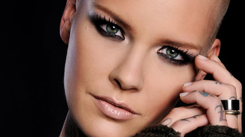 Beginnt sie zu singen, kann man die Fragezeichen förmlich über den Köpfen aufleuchten sehen. Sanft, emotional, tiefgründig – so beschreibt sie selbst die Musik, die sie am meisten liebt. Zum kahl rasierten Schädel und den unzähligen Tattoos scheint das nicht zu passen. Lässt man sich dann aber auf eine kleine Reise mit ihr ein, nimmt sich Zeit für ein Gespräch, verfliegt die Ambivalenz und es formt sich ein ganzes Bild der Sängerin.